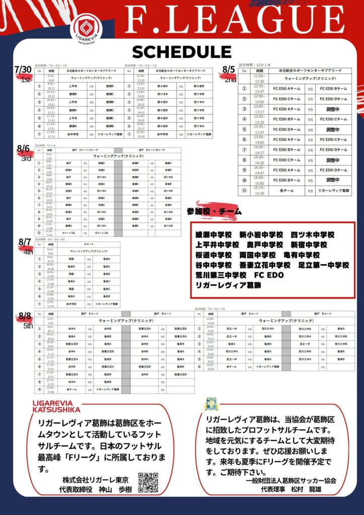 リガーレヴィア葛飾様のご協力により7月31日より5日間の「リガーレヴィアカップ 部活Fリーグワンデイ2024」を開催致します。